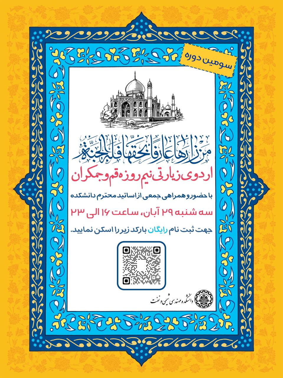 اردوی زیارتی نیم روزهٔ قم و جمکران اردوی زیارتی نیم روزهٔ قم و جمکران اردوی زیارتی نیم روزهٔ قم و جمکران ویژه دانشجویان مهندسی شیمی و نفت زمان: سهشنبه ۲۹ آبانماه - ساعت ۱۶ الی ۲۳ مهلت ثبت نام:...